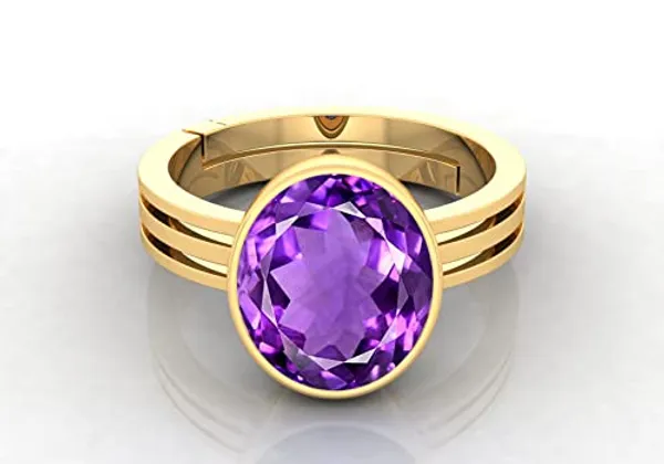 Purple Katela Gemstone Amethyst Stone Gold Plated Adjustable Ring For Men A..More